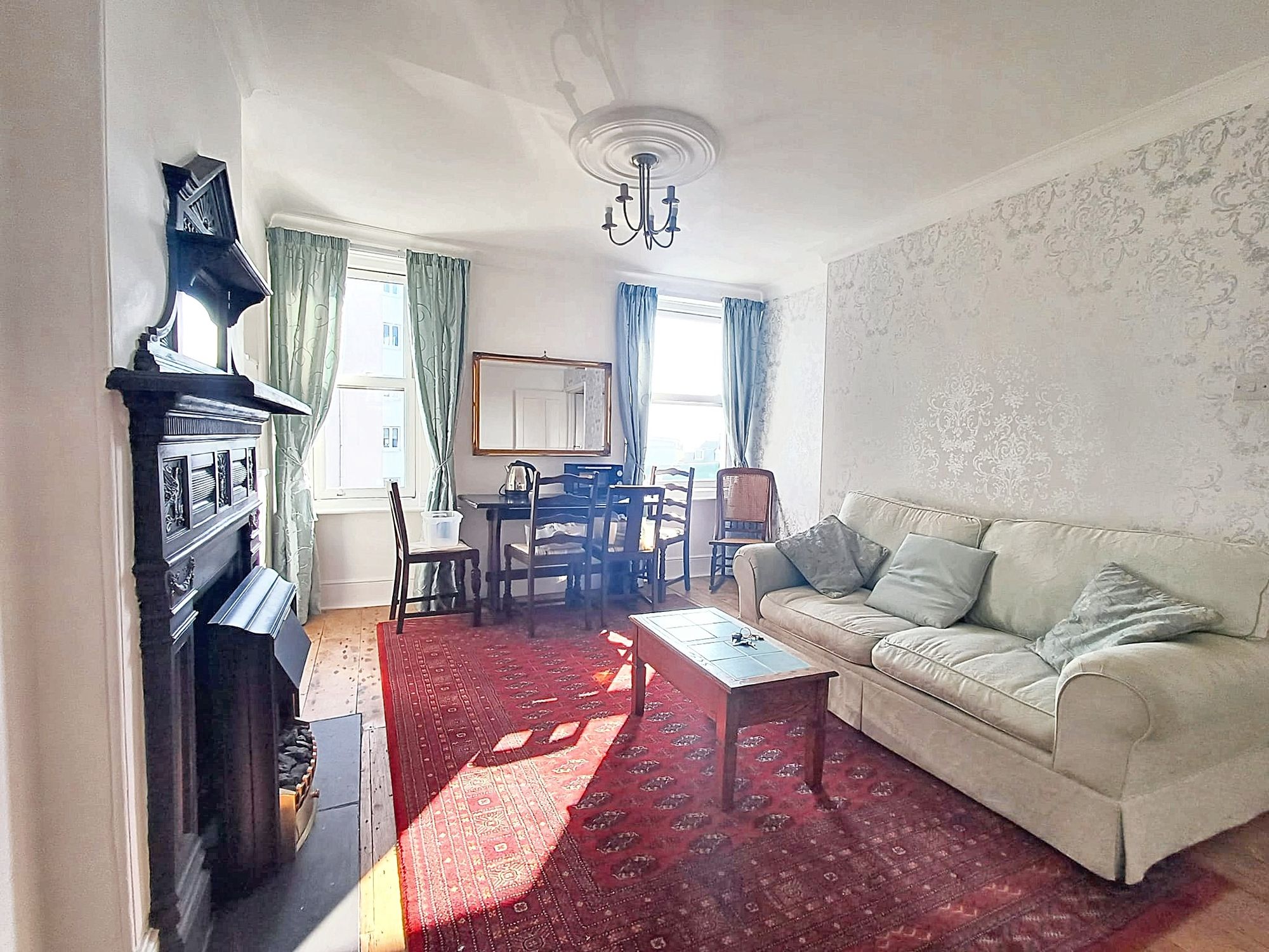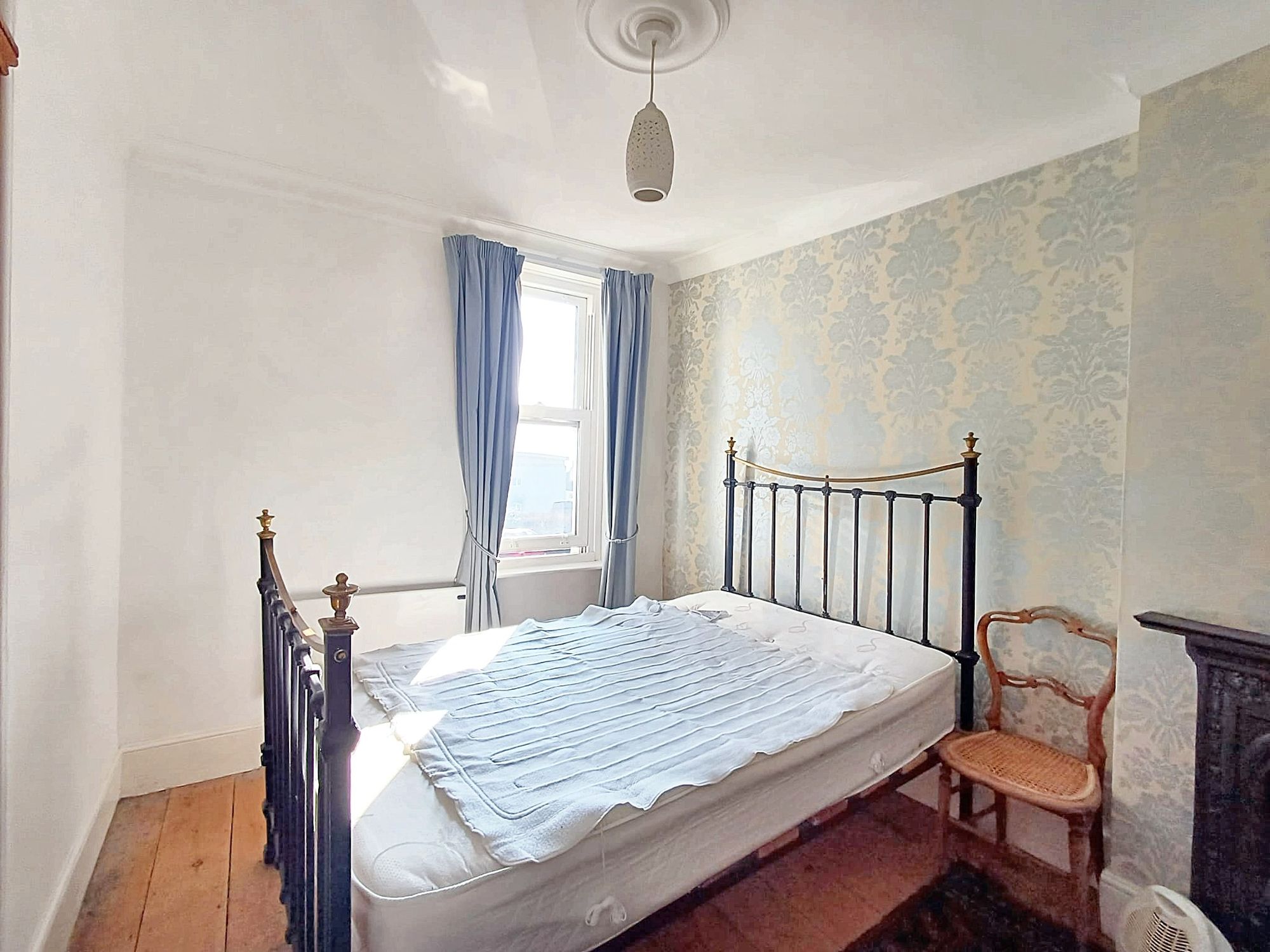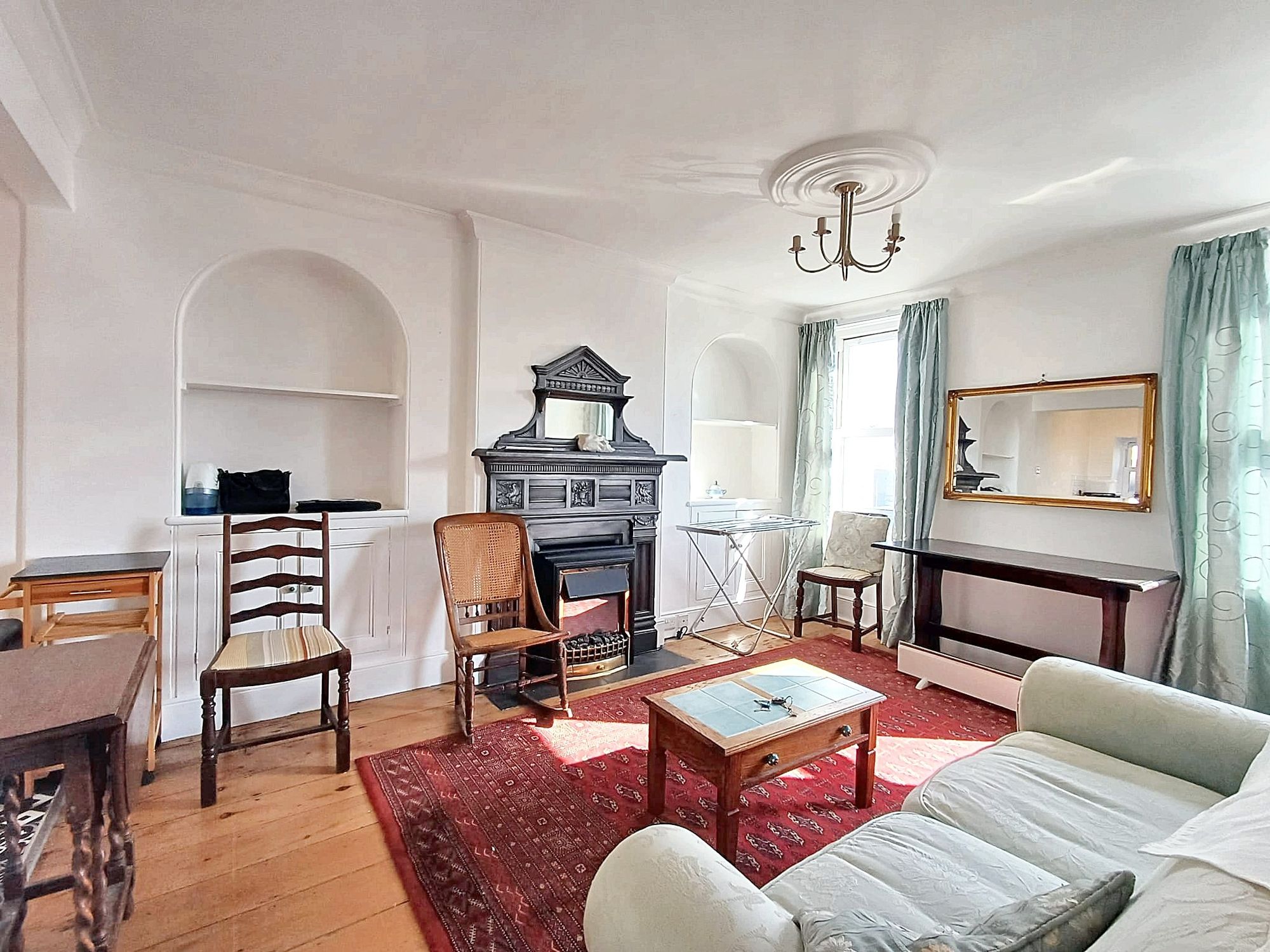 Double glazed sash window to front. Recess with shelving. Decorative cast iron fireplace. Programmable electric heater. Original floorboards. Views towards Shaldon