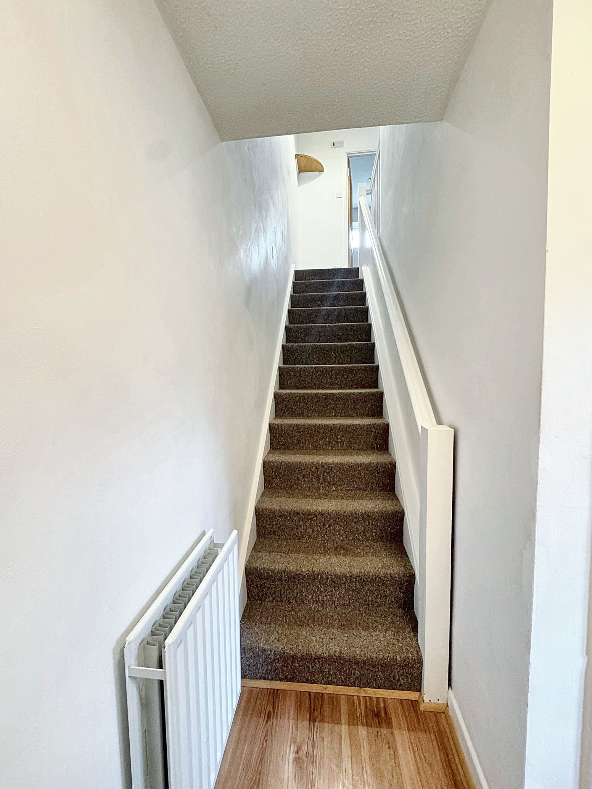 Additional storage is available with a deep cupboard above the stairs on the landing, ensuring your belongings are neatly organized. The home is enveloped in warmth thanks to gas central heating and the benefits of double glazing.
