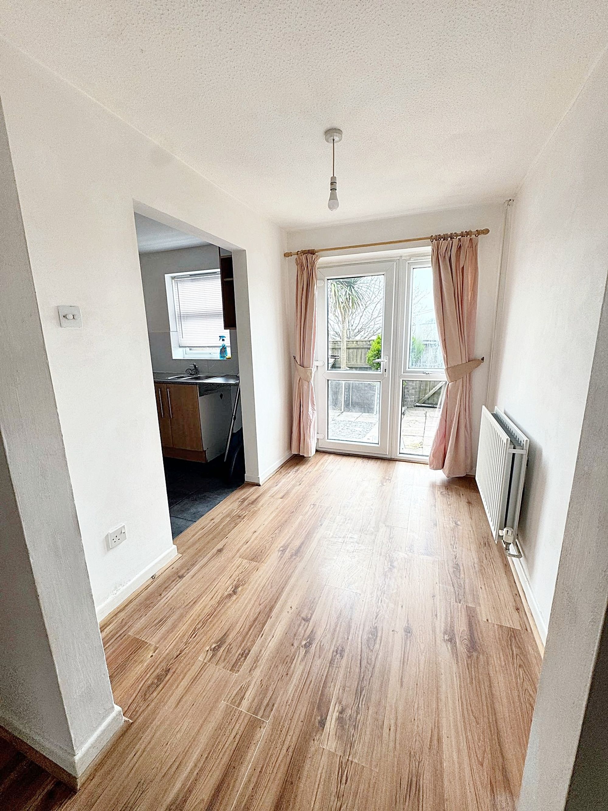 Step inside to discover a spacious hallway featuring a practical cupboard for your storage needs. The generous living room invites you to unwind with its warm ambiance and flows seamlessly into a bright dining area, complete with a door that opens to the tranquil rear garden, perfect for al fresco dining or morning coffees amidst the greenery.