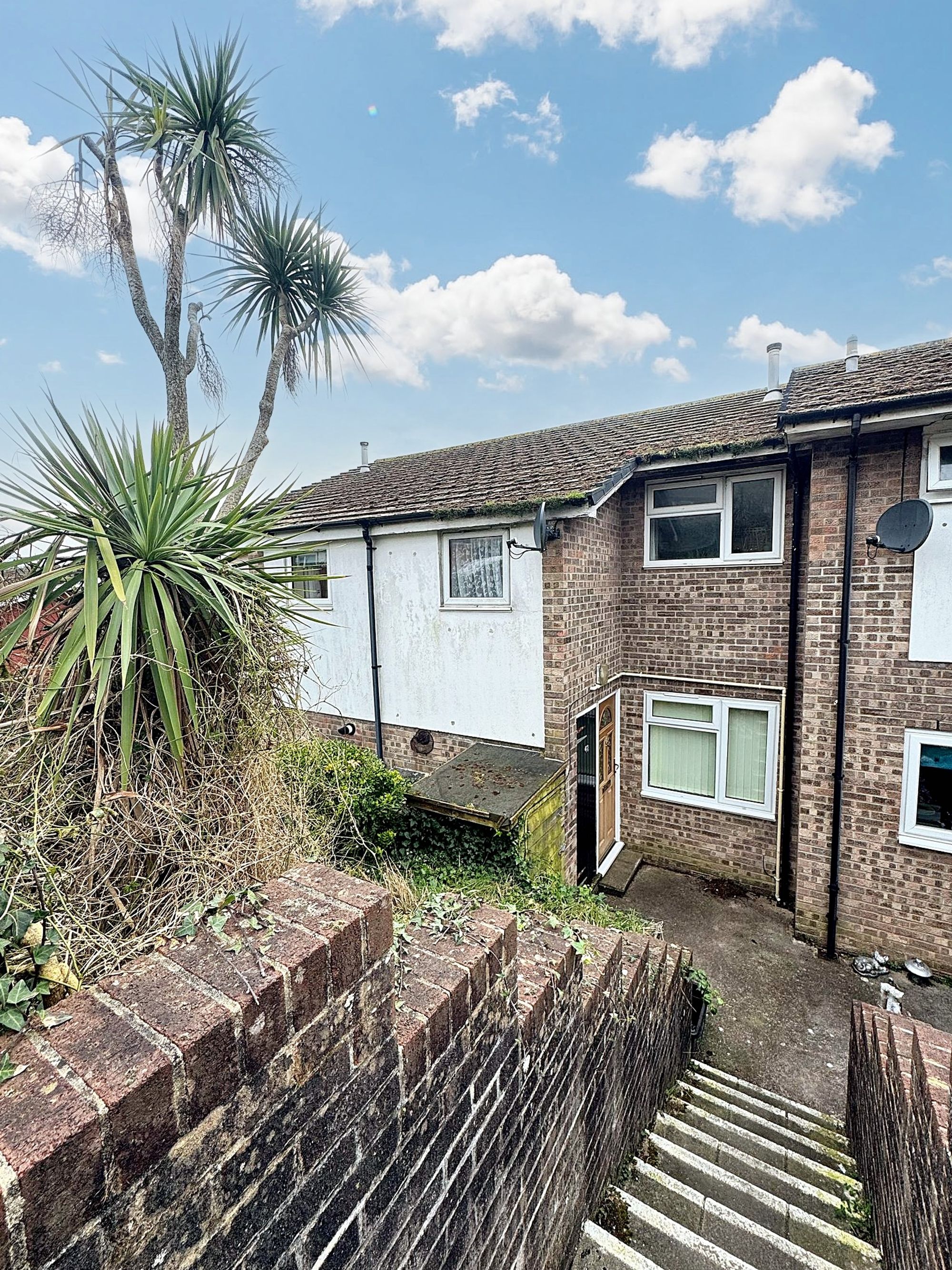 As you approach the property, you’ll find a welcoming entrance with steps leading down to the front door, while a level path offers easy access to the enchanting rear garden.