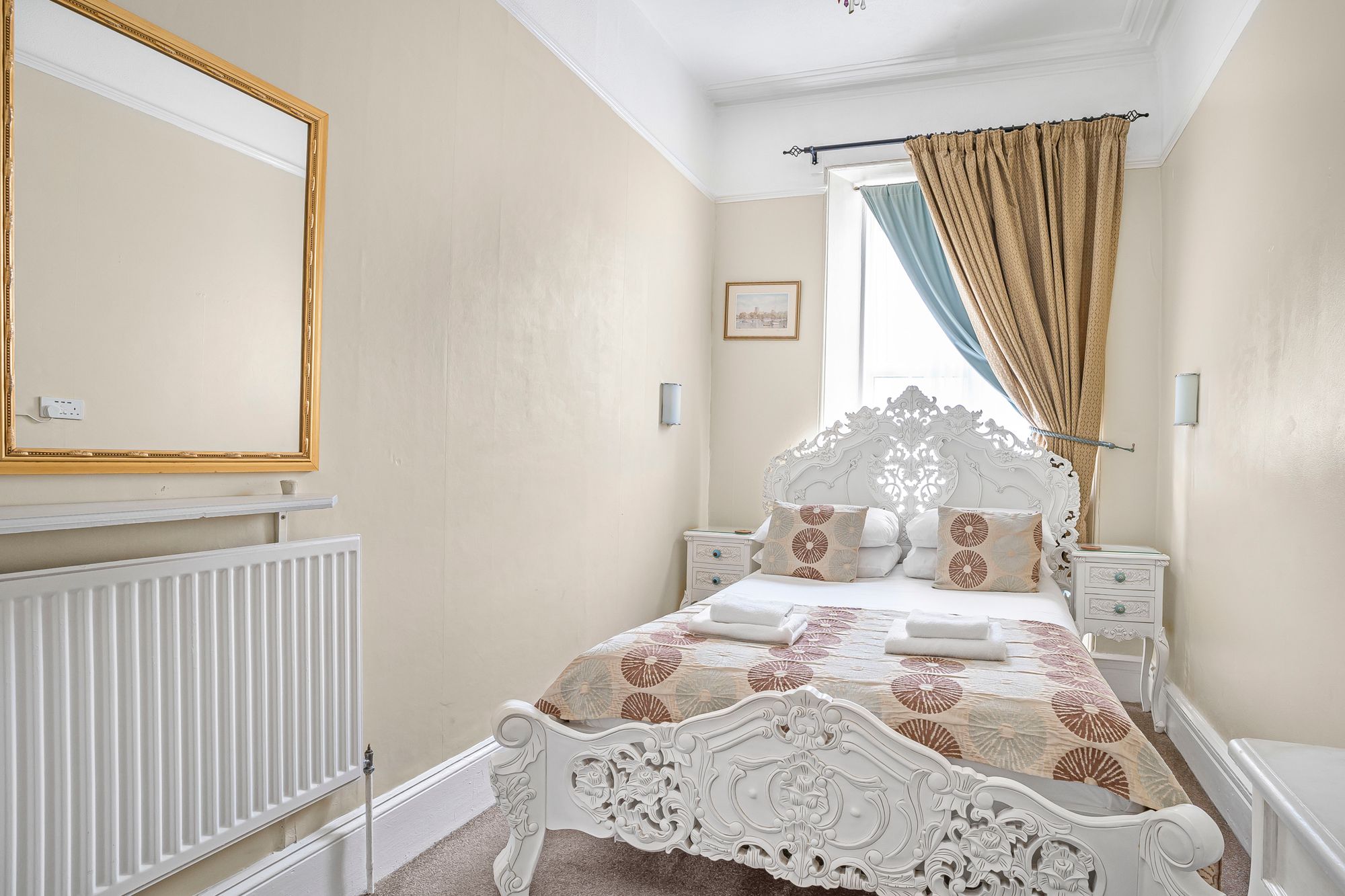 BEDROOM This is a small double room featuring an en-suite with a shower, low-level WC, and wash hand basin. The bedroom has a window to the front of the property.