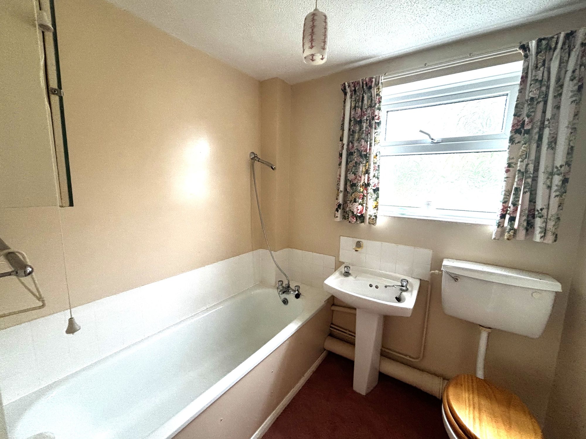Fitted with a matching 3 piece white suite comprising of: Panelled bath with mixer tap and shower attachment, low level WC and pedestal wash hand basin. Double glazed window to rear.