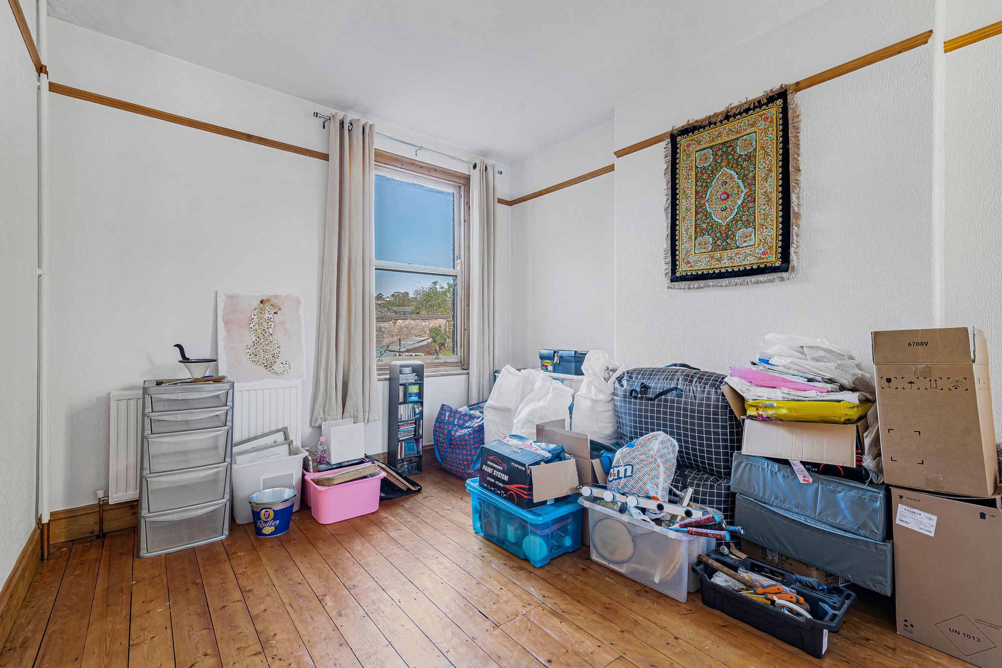 Stripped wooden flooring, sash window overlooking the side and rear gardens, radiator, picture rail, ceiling cornice.