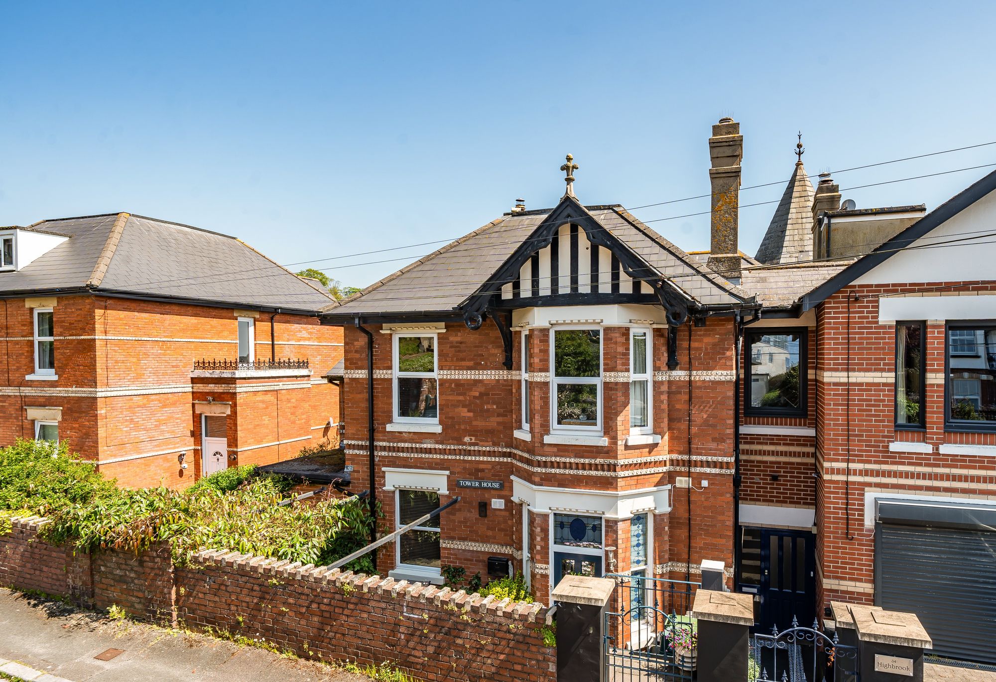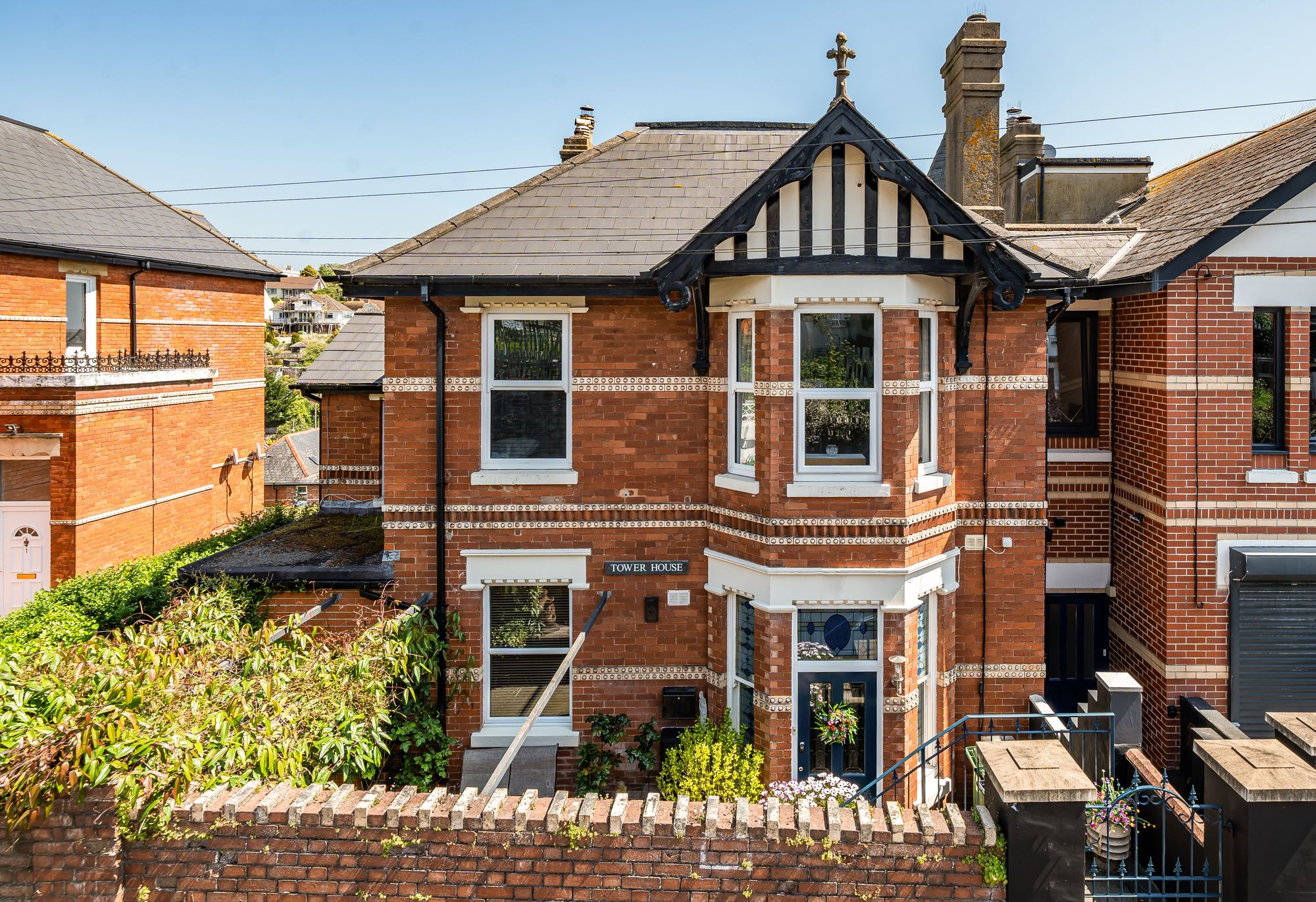 The outside space is equally impressive and designed for both relaxation and entertaining. To the front, the garden is neatly paved for ease of maintenance and, being set down from the road, enjoys a fair degree of privacy. A covered pergola provides an ideal seating area to enjoy the afternoon sun in comfort. At the rear, a paved terrace leads to an enclosed decking area, perfect for al-fresco dining or social gatherings. Steps descend to the remainder of the garden, which is thoughtfully arranged to include an attractive under-decking lounging space. The rest of the garden is laid mainly to lawn, complemented by raised flower bed borders and mature palm trees, creating a lush and inviting outdoor environment. Residents-only parking is available on the road outside the property (subject to local regulations), ensuring convenience for homeowners and their guests. This exceptional home offers a rare opportunity to enjoy period elegance, modern comforts, and beautifully landscaped gardens, all within easy reach of local amenities and transport links.