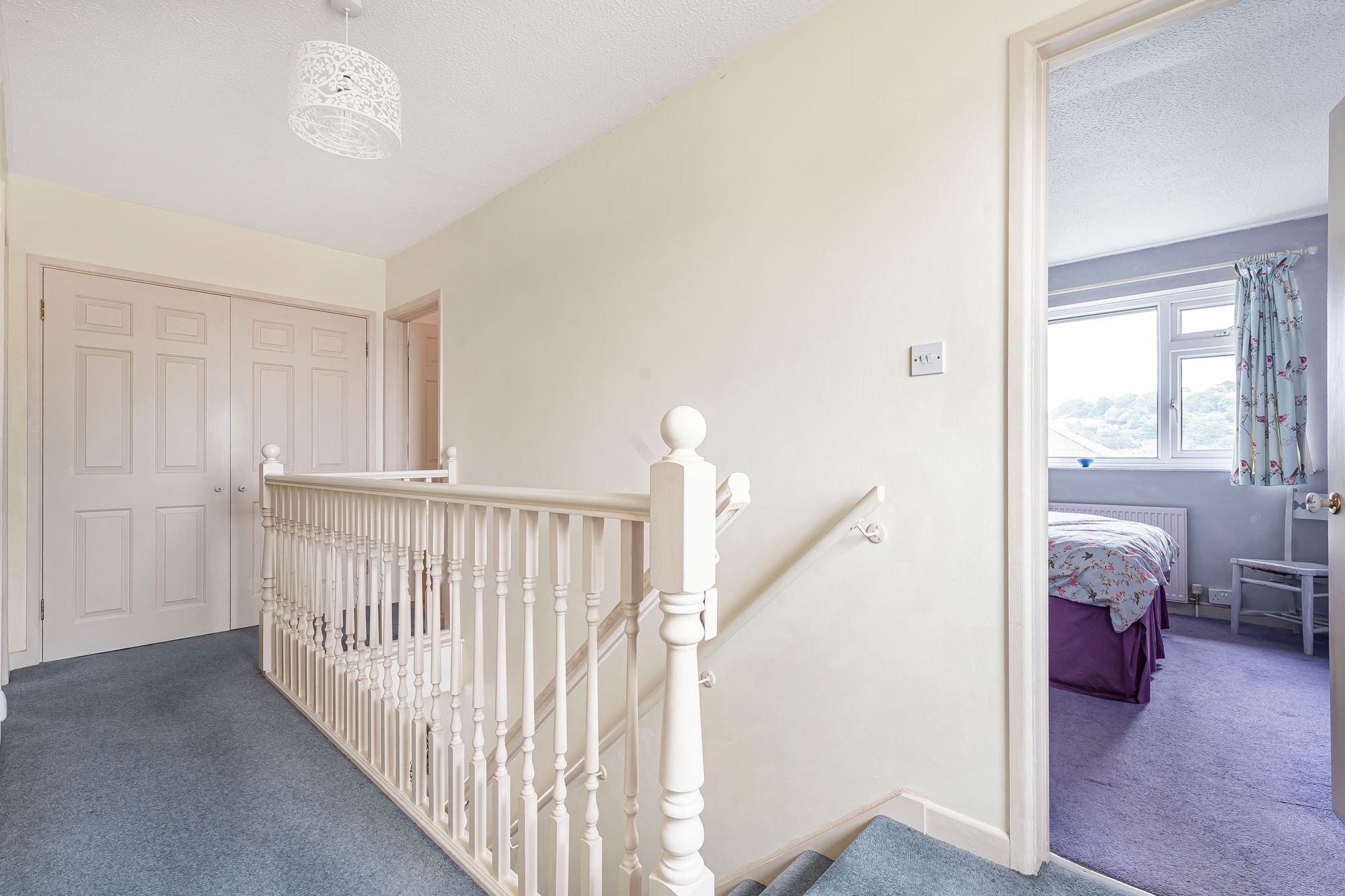 A light and airy landing with a double glazed window enjoying a superb open outlook and sea views across to Shaldon and the countryside beyond. Double width linen cupboard with radiator. Radiator and doors to: