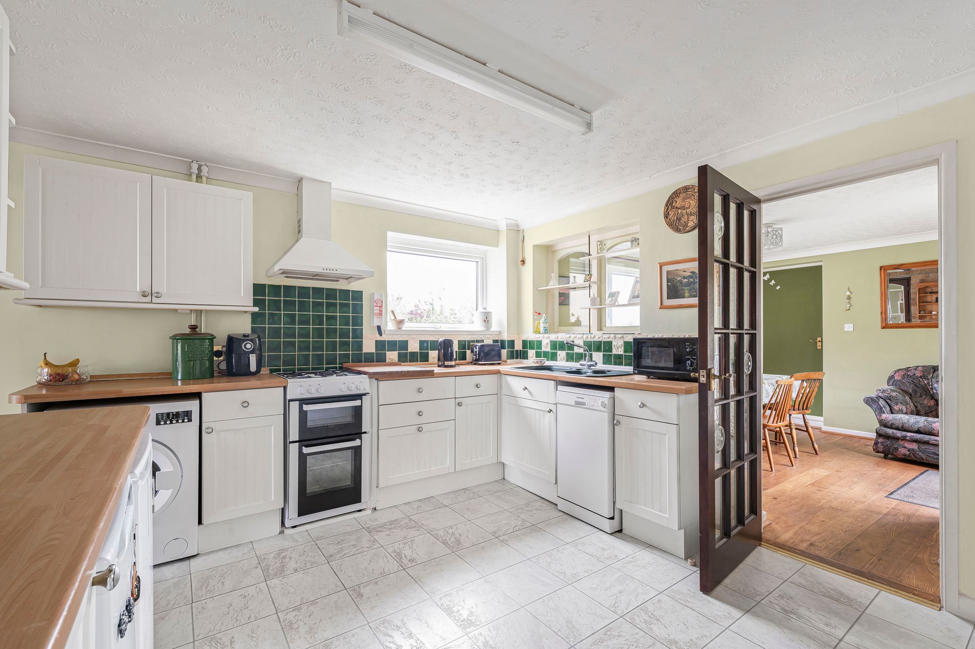Fitted with a modern matching range of wall and base mounted units and drawers with roll edge work surface over. 1.5 bowl sink unit with mixer tap. Fitted gas cooker with cooker hood above, spaces for washing machine, slimline dishwasher, fridge and freezer. Spacious under stairs storage cupboard, radiator. Double glazed window enjoying views of the Ness, door to: