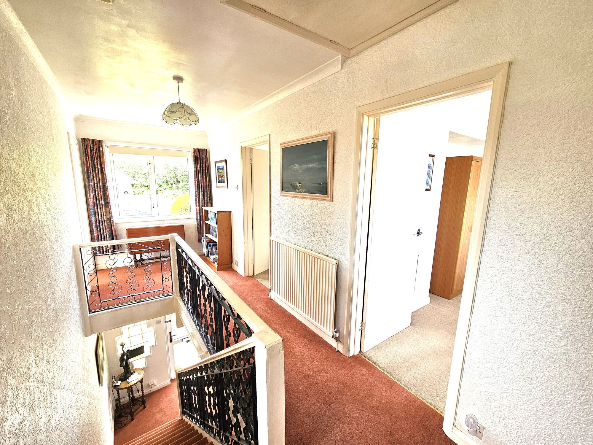 A spacious galleried style landing with double glazed window to front and radiator. Access hatch to loft space which is part boarded with a ladder and light. Doors to: