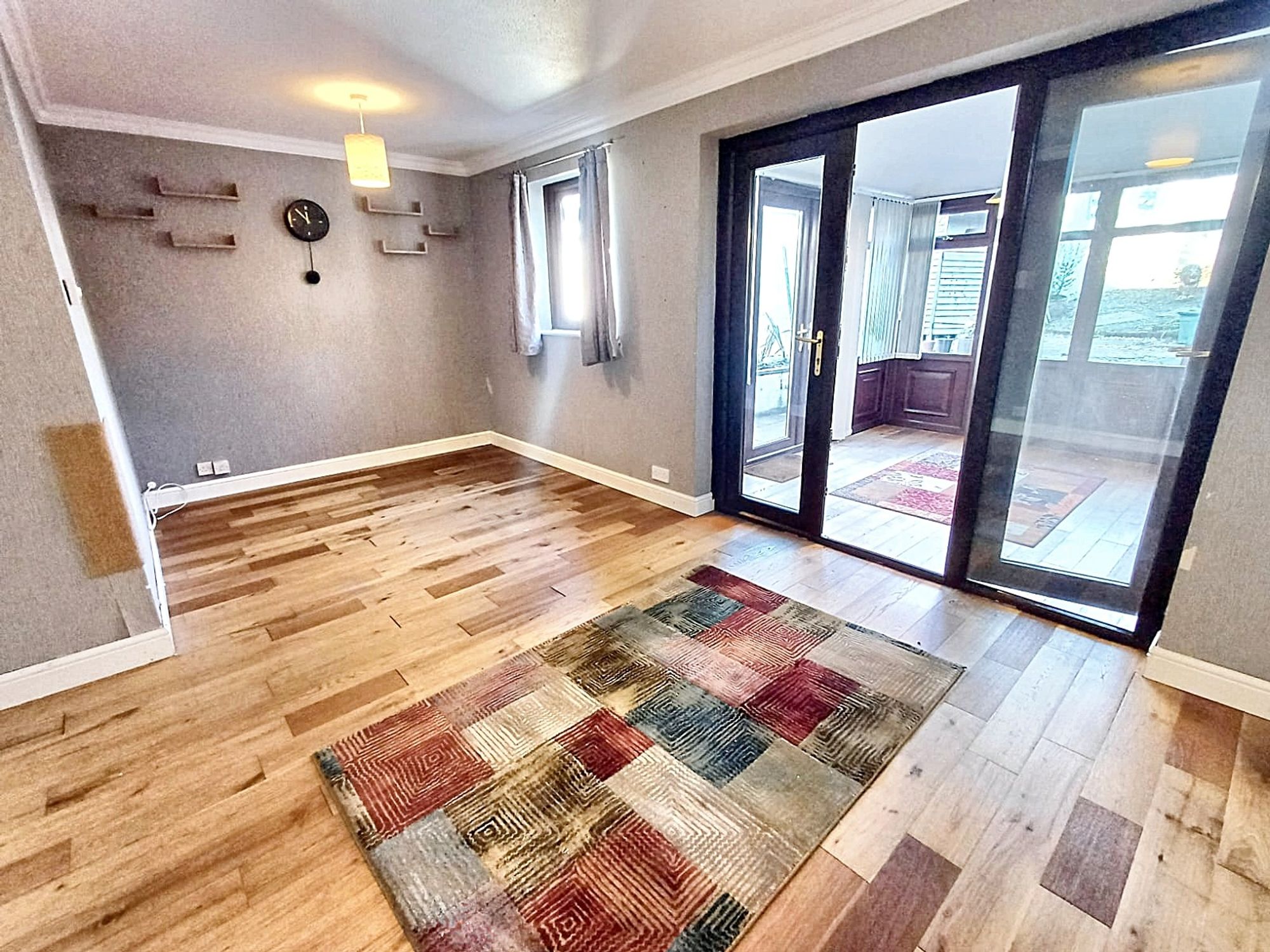 To the ground floor a modern fitted kitchen with appliances, good sized living room through to dining room conservatory.